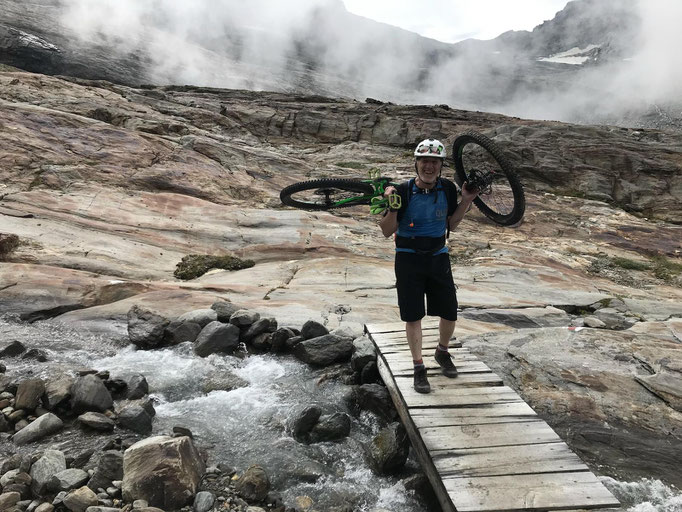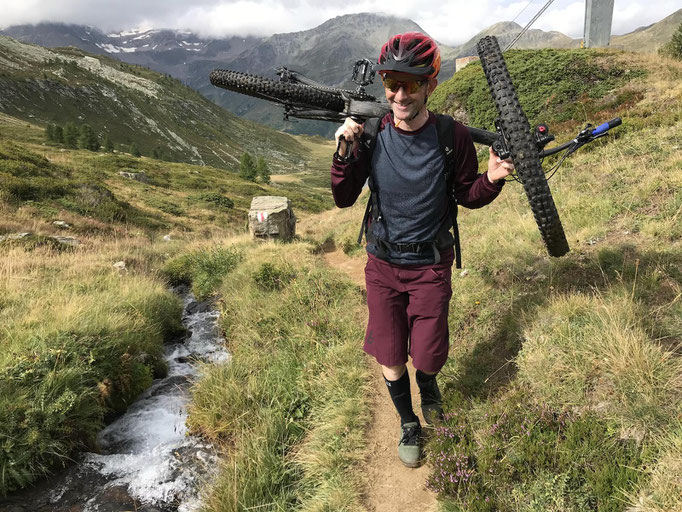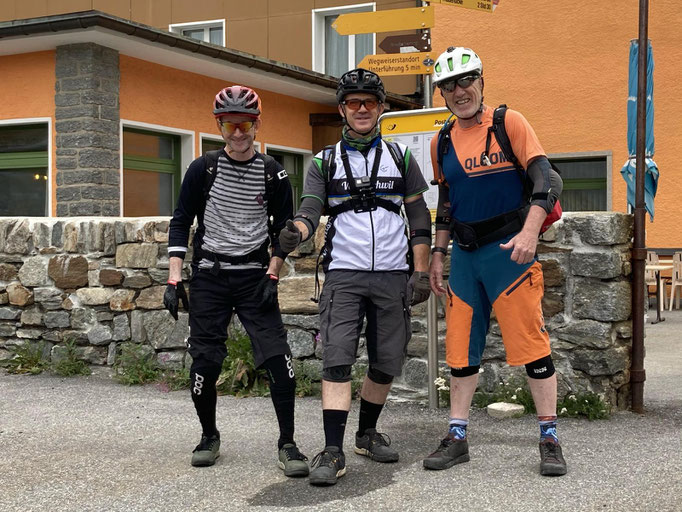 In Brig akoh, hämmer schnell s Gepägg im Hotel deponiert und sinn denn mit em Poschtauto am 09:18 zur Simplon- Passhöchi losgfahre. Bi trockenem, aber e bitz bewölktem Himmel, hämmer unseri Bikes zämmebaut.Am 10:10 simmer denne, uff dr erschti raid, em alt erwürdige Stockalper Pfad. gschtartet.